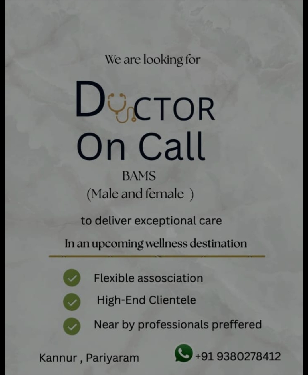 We are looking for DOCTOR On CallBAMS(Male and …