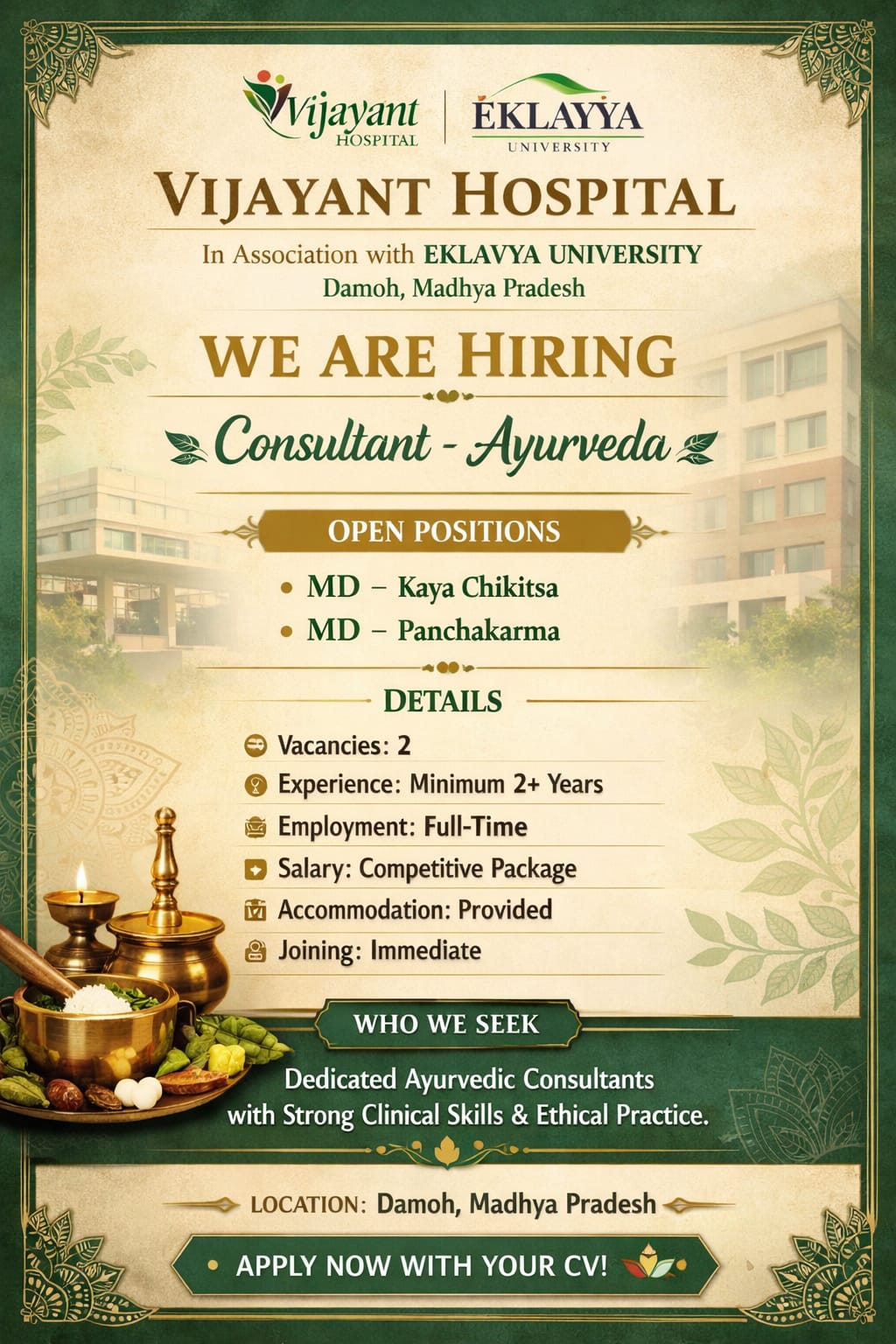 🏥Damoh, Madhya Pradesh🌿 WE ARE HIRING 🌿Consultant – …