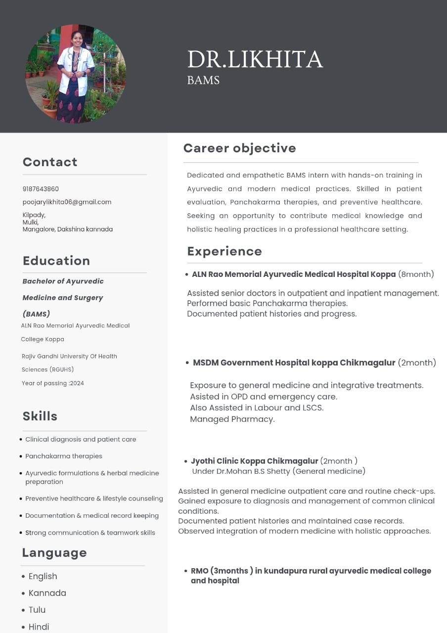 BAMS , Resident Medical Officer - Vaidyasala
